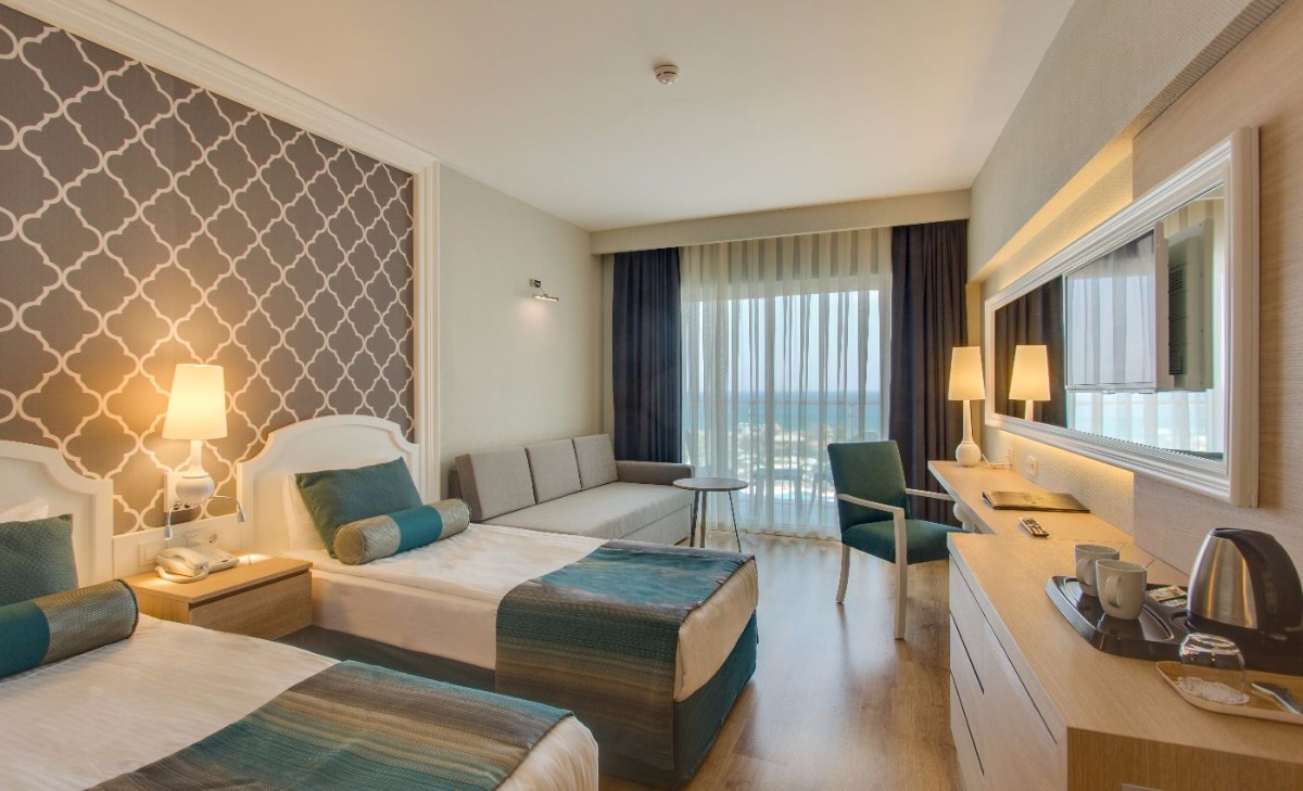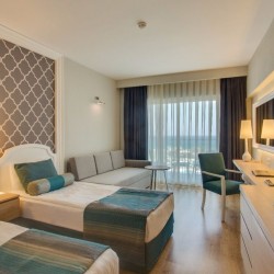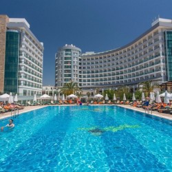 Sadržaji: restorani (glavni; turski, talijanski i mongolski »a-la-carte«), slastičarnica, barovi; pet bazena, dječji bazen, veliki aqua park s devet tobogana (određene sate), unutarnji bazen s odvojenim dijelom za djecu; jacuzzi, turska i parna kupelj, sauna, masaže, salon za ljepotu; trgovinice, internet kutak (doplata), bežični internet; dječje igralište, mini i junior klub, mini disko; aerobik, zumba, aerobik u vodi, odbojka na plaži, streličarstvo, pikado, košarka, mini nogomet, mini golf, stolni tenis, tenis, biljar; animacija, diskoteka.